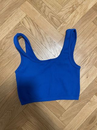 Top de tirantes en un vibrante color azul eléctrico. Su diseño acanalado le da un toque moderno y cómodo. - Tejido elástico y suave. - Tirantes anchos para mayor sujeción. - Corte cropped.