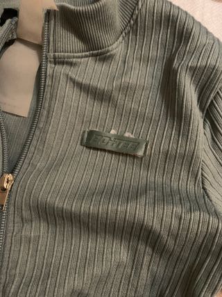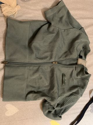 Top de manga larga con cuello alto y detalle de cremallera frontal. Un básico versátil para cualquier ocasión. - Diseño acanalado. - Corte cropped.