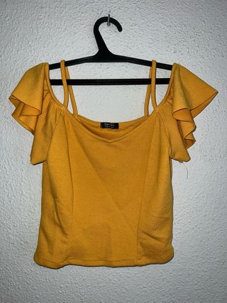 Precioso top de Zara con un diseño muy favorecedor. - Escote cuadrado. - Mangas abullonadas con lazada. - Cuerpo fruncido y con volantes.