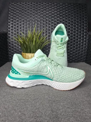 Zapatillas Nike React Infinity Run Flyknit 3, alta gama para running y walking. Color verde menta, fresco y favorecedor. Nuevas sin estrenar, 100 % originales. ✨ Diseñadas para máxima comodidad, estabilidad y amortiguación ✔️ Amortiguación Nike React: suave, reactiva y muy estable ✔️ Upper Flyknit transpirable y adaptable ✔️ Ideales para entrenamientos, caminatas largas o uso diario Talla: EU 38 | US 7 mujer | UK 4.5 | CM 24 📦 Caja original sin tapa 💰 PVP tienda: 119,99 € 🚚 Envío rápido y bien protegido 🌴 Mira mi perfil AlicanteMood para más zapatillas Nike nuevas y artículos top.