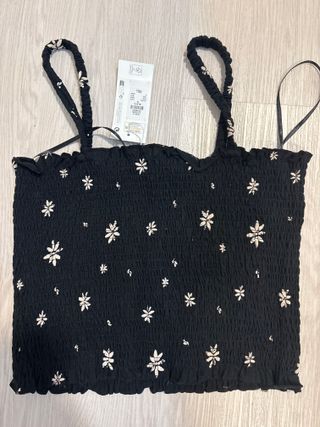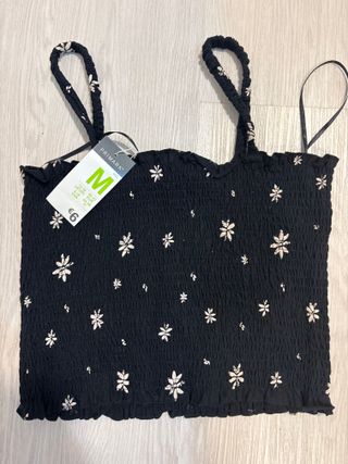 Top corto de Primark con estampado floral. - Diseño elástico fruncido. - Tirantes finos. - Bajo con volante. TODO EL DINERO RECAUDADO IRÁ DESTINADO AL REFUGIO DE GATUNEANDO BIZKAIA