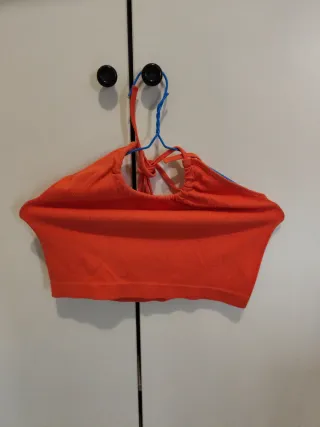 Top deportivo de color rojo, ideal para actividades deportivas. - Diseño con espalda cruzada. - Tejido suave y transpirable. - Costuras reforzadas para mayor durabilidad.