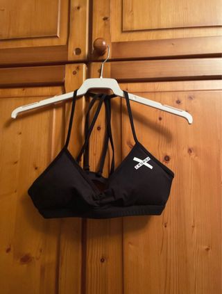 Top deportivo de color negro, ideal para actividades deportivas. - Diseño con tirantes cruzados en la espalda muy sexy. - Los tirantes de la espalda se pueden quitar - Banda elástica en la parte inferior para un mejor ajuste. - Logo de la marca en la parte superior.