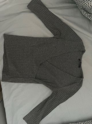 Top corto de color lila/lavanda, tejido canalé elástico. Tiene escote en V y fruncido delantero ajustable con lazada, lo que permite adaptarlo al pecho y al largo. Manga larga y corte favorecedor. Muy cómodo y estiliza mucho puesto. 📐 No indica talla, por eso dejo medidas aproximadas para que puedas comprobar si te encaja: Ancho de pecho: ~38–39 cm Ancho de hombros: ~41–42 cm Largo total: ~40 cm Al ser elástico, da bastante margen. Calculo que es una talla M. 📌 Estado: Buen estado general, pero con bolas del paso del tiempo. No tiene manchas ni roturas. Sólo realizo envíos. Hago descuento por compras en lote 🛍️