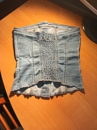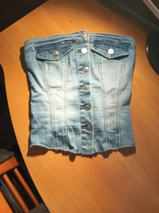 Este top vaquero sin tirantes es una prenda versátil y moderna. - Diseño que estiliza la figura. - Cierre de botones. - Acabado deshilachado en el bajo.
