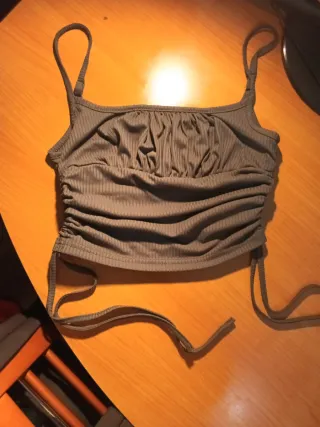 Top de tirantes con un diseño fruncido y copas de espuma. - Tirantes finos ajustables. - Tejido elástico y suave. - Detalle fruncido en el frontal.
