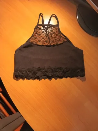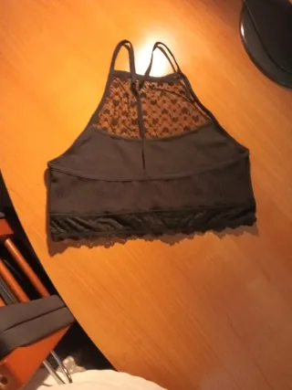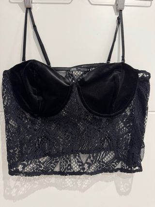 Elegante top con detalles de encaje y terciopelo. - Diseño con tirantes finos. - Cuerpo con copas. - Acabado con borde de encaje.