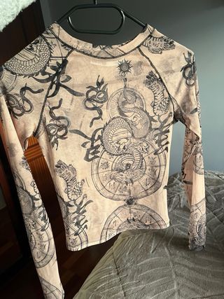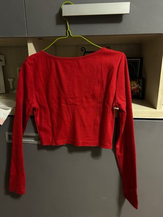 Top de manga larga sin usar, en perfecto estado. Es bastante escotado y tiene una abertura en la mitad del pecho.