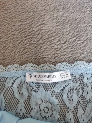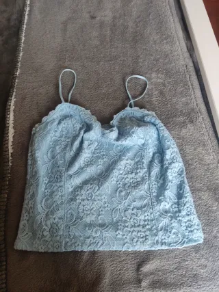 Precioso top de Stradivarius con un delicado encaje floral. - Diseño con tirantes finos. - Escote festoneado. - Tejido ligero y con textura.