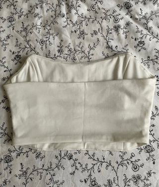 Top blanco con un diseño moderno y favorecedor. - Estilo corsé. - Costuras verticales para un ajuste estructurado. - Tejido liso.