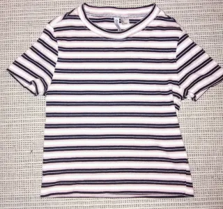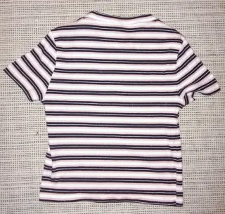 Top de manga corta con un diseño de rayas finas en varios colores. Es una prenda cómoda y versátil. - Tejido elástico - Diseño de rayas horizontales. - Cuello redondo. - Manga corta.