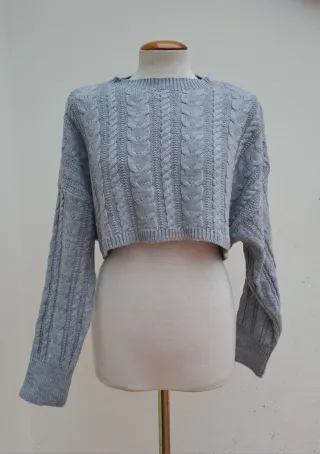 Jersey corto de punto con diseño trenzado. - Tejido suave y agradable. - Manga larga. - Corte crop top moderno.