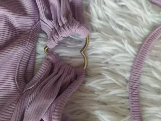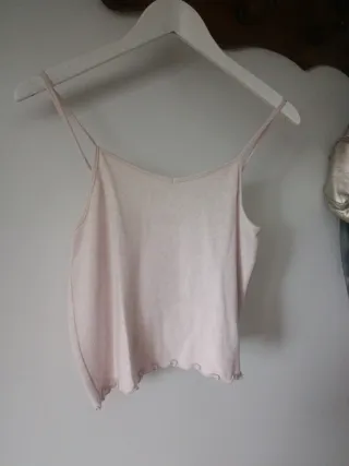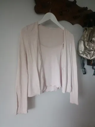 Conjunto de punto top y chaqueta a juego. Usado dos veces - Top con tirantes finos y detalle de ondas en el bajo. - Chaqueta a juego. Talla L pero es como una M.