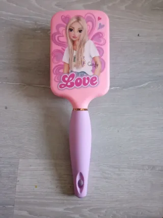 Cepillo para el pelo con un diseño inspirado en Top Model. - Ilustración de la muñeca Candy. - Detalle de corazones y remolinos. - Mensaje Love en la parte inferior.