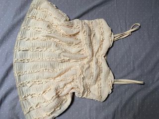 Bonito top de Zara con detalles de crochet. - Diseño con tirantes finos. - Cuerpo fruncido y con vuelo. - Tejido ligero y fresco.