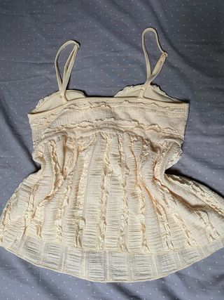 Elegante top lencero con detalles de encaje. Nuevo , sin etiqueta - Diseño con tirantes finos. - Adorno de encaje negro en escote y bajo. - Tejido ligero y fluido.