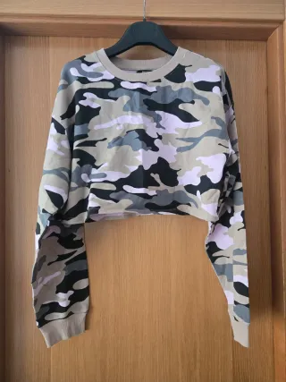 Sudadera de corte crop top con estampado de camuflaje. - Diseño de camuflaje moderno. - Manga larga. - Cuello redondo., no se hacen cambios en evoluciones