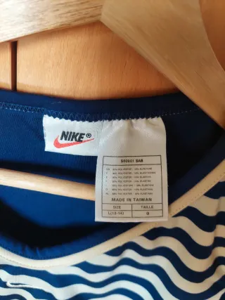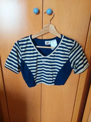 Top deportivo Nike azul con rayas beige