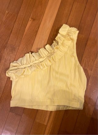 Top asimétrico amarillo con volantes