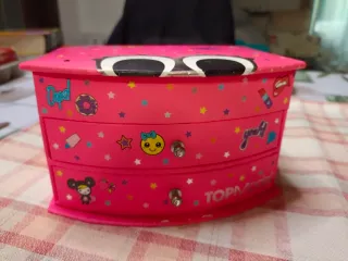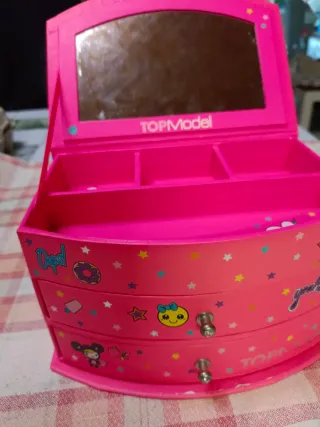 Bonita caja joyero con un diseño divertido y juvenil. - Decorada con divertidos dibujos y estrellas. - Tres cajones para organizar tus tesoros. - Tiradores con brillantes.