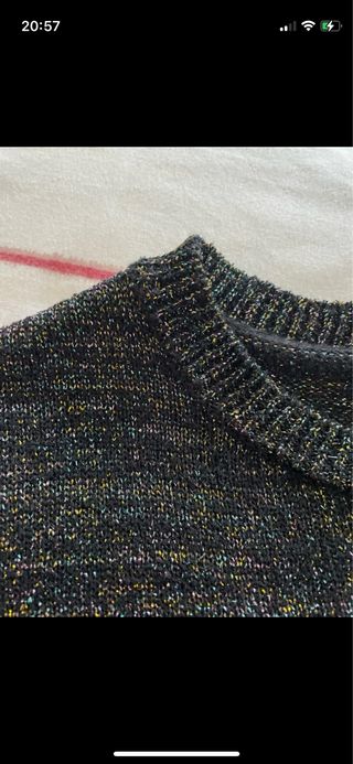 Prenda de punto con un toque brillante y festivo. Su diseño versátil la hace ideal para diversas ocasiones. - Tejido con hilo metalizado. - Cuello redondo.sado en una ocasión - Es un top suelto que se adapta a varias tallas