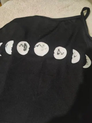 Top corto con un diseño de fases de la luna en la parte delantera. La espalda queda descubierta, muy favorecedor. Está totalmente nuevo, en su bolsa original. *SI QUIERES LOTE Y ENVÍO, AVÍSAME Y LO PERSONALIZAMOS PARA QUE PAGUES SOLO UN ENVIO* 📍Entrega en mano en Collado Villalba o envío.