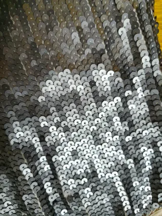 Precioso corpiño con lentejuelas, ideal para una ocasión especial. ✨ - Diseño de rayas verticales. - Lentejuelas plateadas y blancas. - Tejido brillante y llamativo.