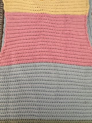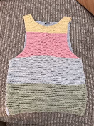 Top de crochet de Stradivarius con un diseño de rayas en varios colores. - Diseño a rayas. - Tejido de crochet. - Sin mangas.