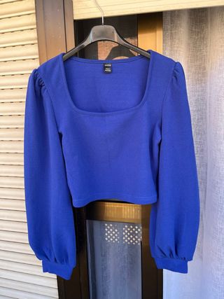 Top de manga larga con un diseño moderno y favorecedor. - Escote cuadrado. - Mangas abullonadas. - Corte cropped.