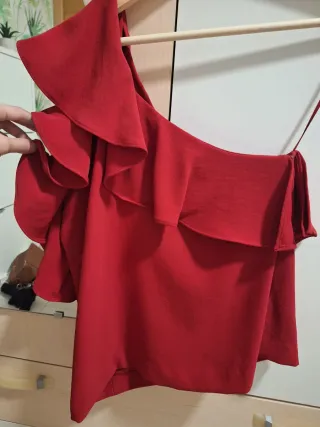 Top elegante con un diseño de volantes asimétrico. Talla XS pero vale también para S. Usado solo una vez. - Diseño de un solo hombro. - Detalle de volantes. - Tejido ligero.
