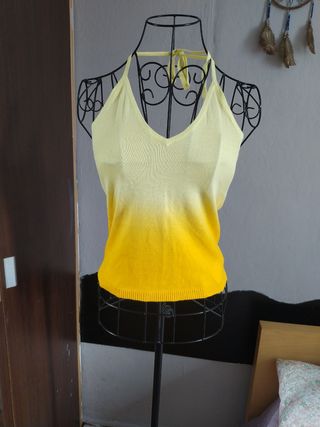 Top de algodón con un diseño degradado de amarillo claro a amarillo intenso. Es una prenda ligera y fresca. - Material: Algodón. - Diseño: Degradado de color.