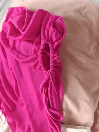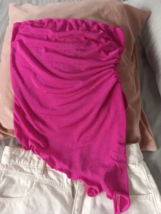 Top asimétrico de la marca Shein en color fucsia. Su diseño moderno y favorecedor lo hace ideal para cualquier ocasión. - Tejido tipo acrílico. - Corte asimétrico. - Talla única.