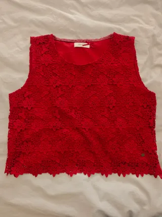 Bonito top de encaje con un diseño floral. - Sin mangas. - Acabado festoneado en el bajo. - Detalle encaje floral.