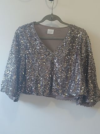 Chaqueta corta de lentejuela grande Color topo Nunca usada