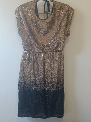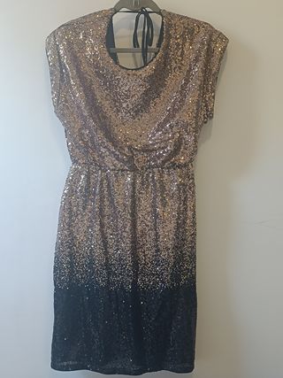 Vestido midi de lentejuelas. Dos colores negro y marrón/topo Puesto dos veces Cintura con elástico negro