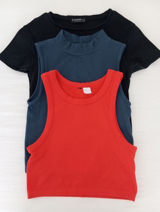 Lote de camiseta de manga corta y top sin mangas. El top rojo ya no está a la venta