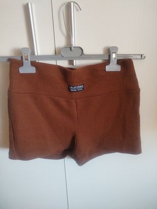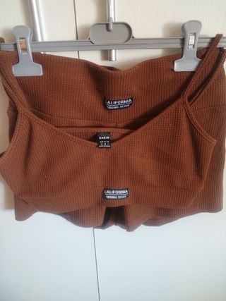 Conjunto SHEIN de verano en color marrón, talla M. Está compuesto por un top y unos shorts. - Tejido suave y agradable al tacto. - Diseño de canalé. - Perfecto para los días calurosos.