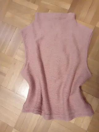 Precioso top de Stradivarius con cuello alto y tejido texturizado. - Diseño sin mangas. - Corte favorecedor. - Color rosa palo. - Nuevo con etiqueta.