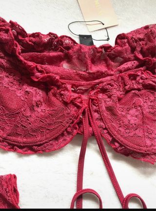 Este top de encaje es una pieza llamativa y elegante. medidas: - largo manga: 74cm - pecho: 72cm - Diseño con mangas largas acampanadas. - Escote con volantes y cordones ajustables. - Tejido de encaje floral.