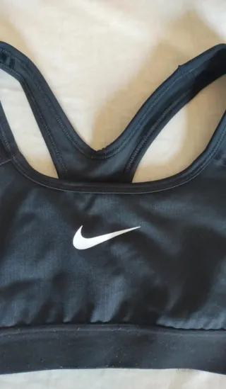 Top deportivo Nike en color negro. Diseño cómodo y funcional. - Tirantes cruzados en la espalda. - Banda elástica en el bajo.