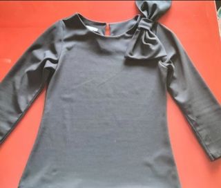 Preciosa blusa negra de manga larga de Bershka, talla S. Es una prenda elegante y cómoda, ideal para cualquier ocasión. - Diseño con cordones en el delantero. - Tejido de canalé.