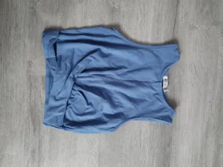 Top de tela suave con un diseño drapeado. - Escote redondo. - Sin mangas. - Etiqueta de marca visible.
