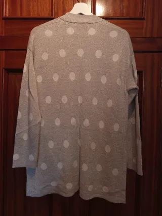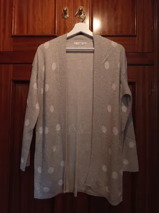 Chaqueta de punto con un diseño brillante y estampado de topos. - Diseño abierto. - Tejido con hilo metalizado.