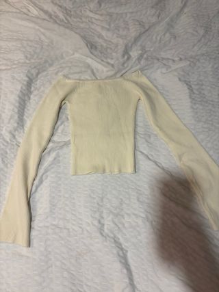 Jersey crop top de Zara en color beige. Es una prenda sin estrenar, ideal para añadir un toque moderno a tu armario. - Diseño crop top. - Tejido suave y cómodo.