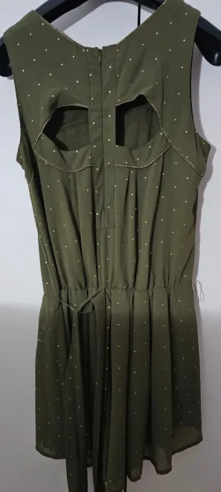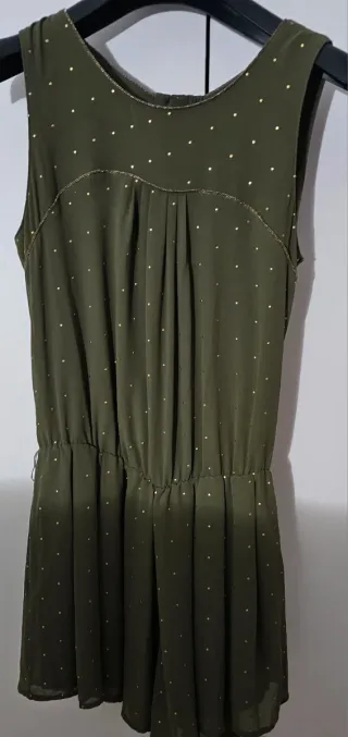 Vestido verde con topos dorados
