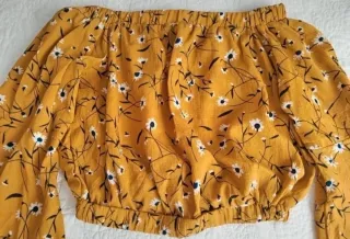 Talla S. Top corto de Shein con estampado floral. - Color amarillo vibrante. - Diseño de manga larga acampanada. - Escote Bardot. - Cintura elástica.