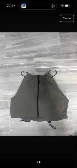 Conjunto de dos piezas de pana. - Top estilo corsé con cremallera. - Pantalón de campana - Talla S para el top. - Talla M para el pantalón.