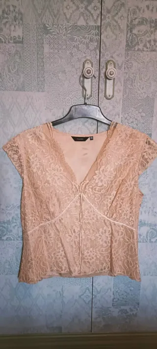 Camisa/top de encaje FALCONI beige. Talla 44/46