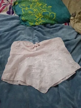 Este top strapless tiene un diseño único y llamativo. - Parte superior con nudo. - Falda con bordado floral. - Tejido ligero y cómodo.