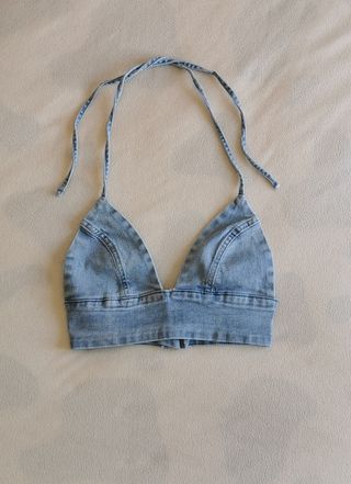Top estilo halter en color negro de H&M, talla M, puesto dos o tres veces. Vendo el mismo en color verde agua/menta / caqui claro. Hago descuentos por la compra de varios artículos de hasta el 40%! Echa un vistazo a mi perfil😊